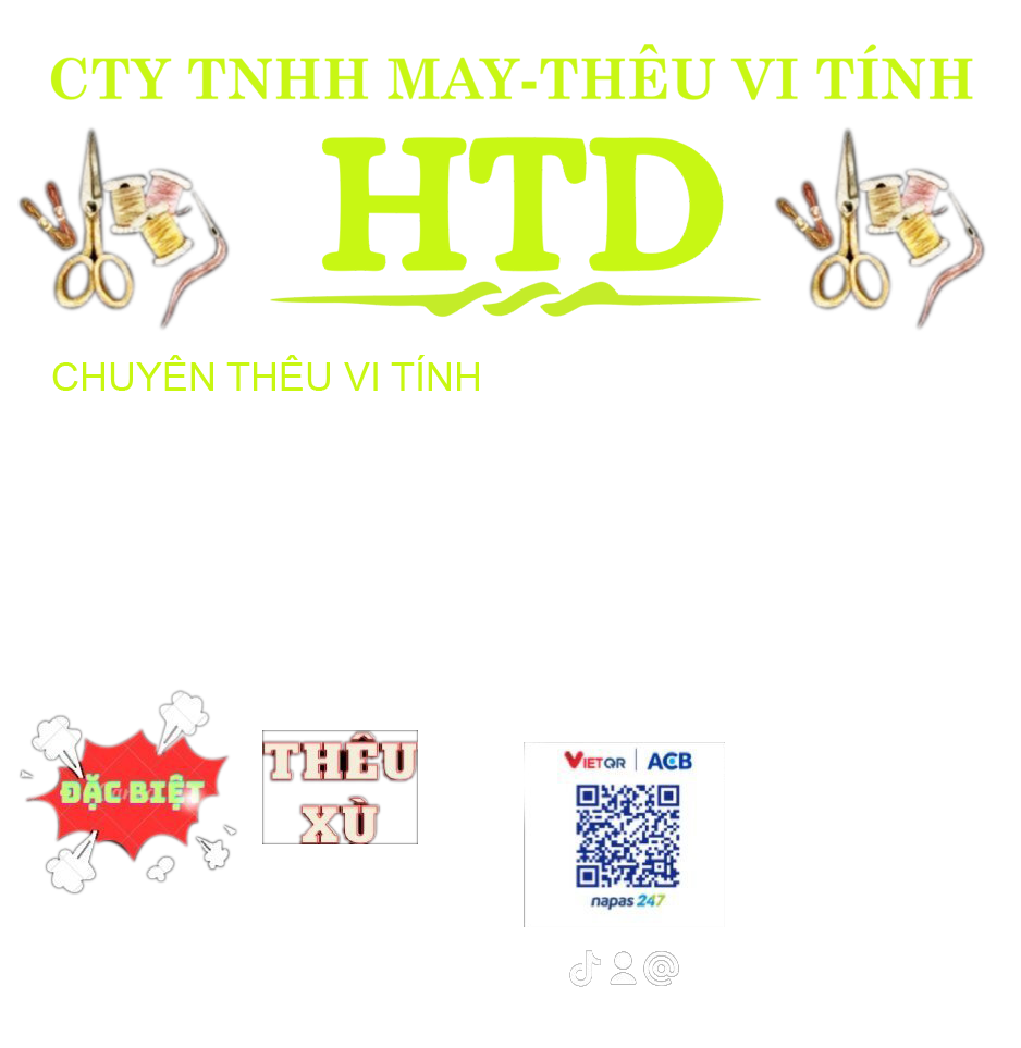 Công Ty TNHH may - thêu VI TÍNH HTD là đơn vị sản xuất, gia công chuyên nghiệp các dòng sản phẩm như: thêu logo, thêu đồng phục, thêu tạp đề, may mặc,...... Với đội ngũ nhân viên có tay nghề và kinh nghiệm trên 10 năm trong nghề....